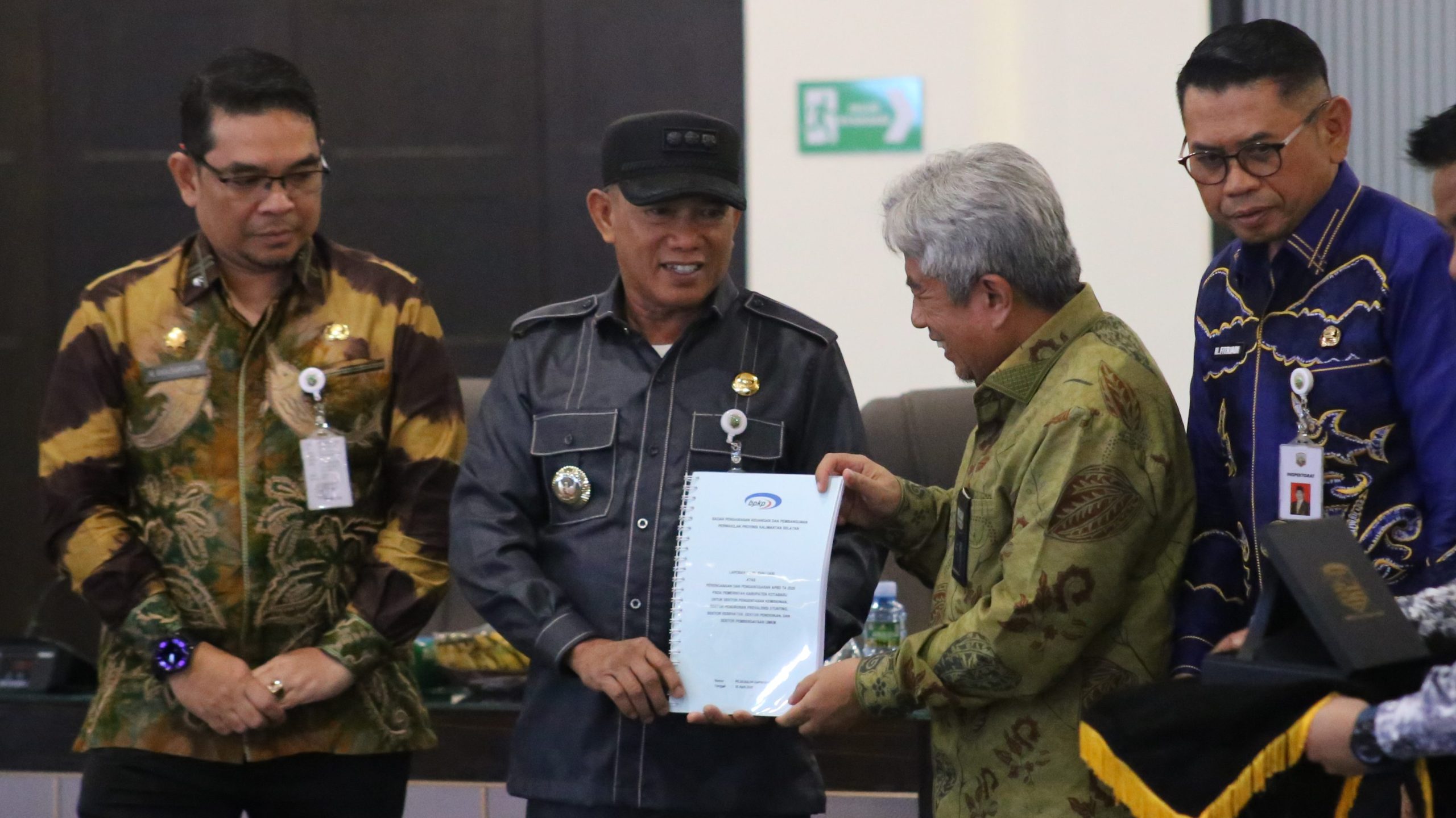 Acara ditutup dengan penyerahan cenderamata dari Bupati Kotabaru kepada Kepala BPKP Kalimantan Selatan, serta penyerahan resmi dokumen hasil evaluasi perencanaan dan penganggaran APBD Tahun 2025 kepada Pemerintah Kabupaten Kotabaru.