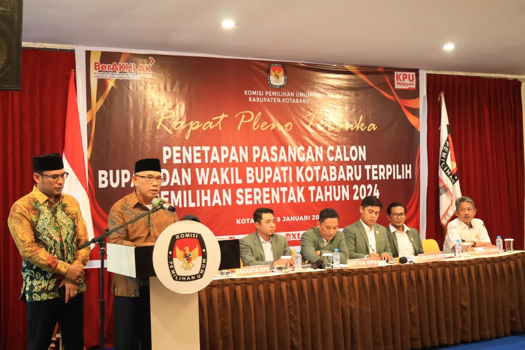 Komisi Pemilihan Umum (KPU) Kotabaru menggelar Rapat Pleno Terbuka Penetapan Pasangan Calon Bupati dan Wakil Bupati Kotabaru Terpilih pada Pemilihan Serentak Tahun 2024.