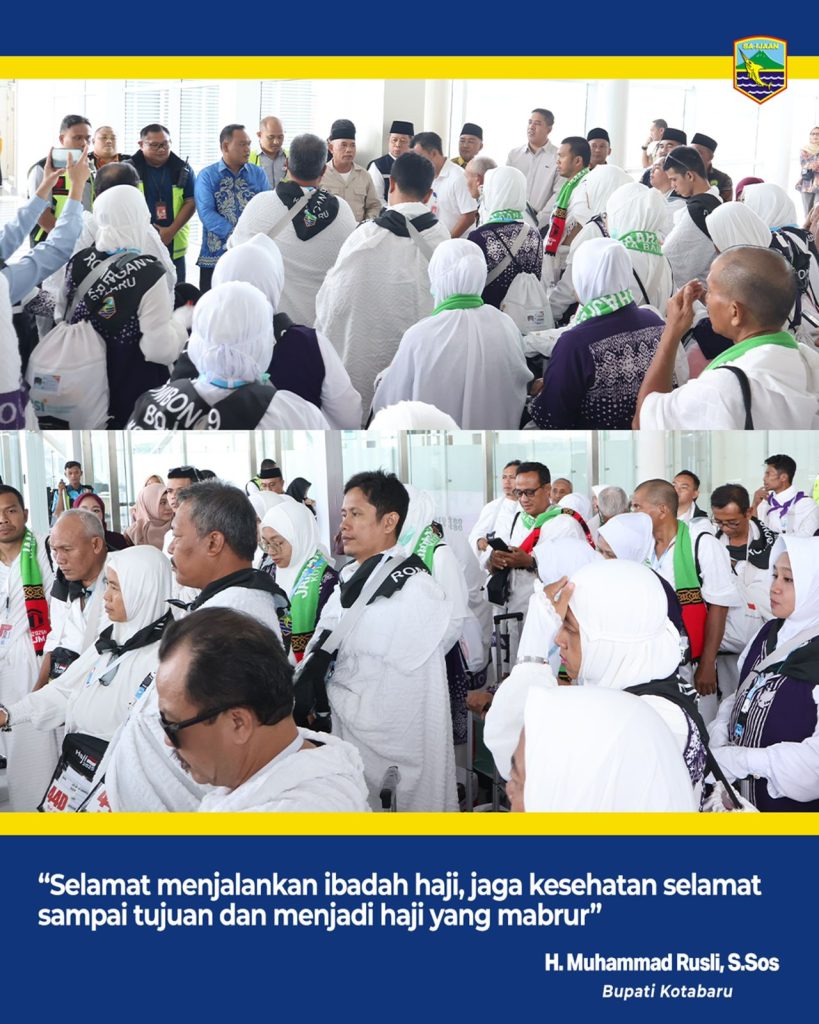 Bupati Kotabaru H Muhammad Rusli melepas secara langsung keberangkatan jama’ah calon haji untuk musim haji 1446 Hijriah/ 2025 Masehi Kloter 11 di Bandara Internasional Syamsuddin Noor, Banjarmasin. Minggu (25/05/2025).Dalam sambutannya, Bupati Kotabaru H Muhammad Rusli menyampaikan rasa haru dan syukurnya atas terlaksananya pelepasan ini. Ia mengingatkan para jamaah untuk menjaga kesehatan, mematuhi aturan selama berada di tanah suci, serta fokus beribadah dengan niat yang tulus semata-mata karena Allah SWT.“Atas nama Pemerintah Daerah Kabupaten Kotabaru, kami sampaikan sambutan dengan rasa bahagia dan haru, karena hari ini kita berkumpul untuk melepas saudara-saudara kita yang mendapat panggilan untuk menunaikan ibadah haji,” ucapnya.Bupati juga mendorong jama’ah untuk mempererat kebersamaan selama di tanah suci dan saling membantu antar sesama.“Jaga kekompakkan antara jama’ah, jangan lupa bersyukur dan bersabar dalam setiap perjalanan, selamat menunaikan ibadah haji, jaga kesehatan selamat sampai tujuan dan menjadi haji yang mabrur,” tutupnya.Acara pelepasan yang penuh khidmat dan haru ini Bupati melepas keberangkatan jama’ah haji yang tergabung dalam kloter 11 yakni, Kabupaten Kotabaru 178 orang, Kabupaten Tanah Bumbu 184 orang, Banjarmasin 52 orang dengan tambahan dari jama’ah Kabupaten Hulu Sungai Utara 2 orang dan Tapin 2 orang, jumlah keseluruhan 418 jama’ah yang juga di dampingi 7 orang petugas sehingga total keseluruhan 425 orang yang berangkat ketanah suci mekkah.Sedangkan jama’ah calon haji asal Kabupaten Kotabaru yang tertua atas nama Muhammad Zaini Uga (91) tahun dari Kecamatan Kelumpang Barat dan termuda dengan umur (21) tahun atas nama Muhammad Fikri Hidayatullah dari Desa Semayap Kecamatan Pulau Laut Utara.Jama’ah calon haji kloter 11 BDJ akan diberangkatkan menggunakan pesawat Lion Air dengan nomor penerbangan LNI 3118 dari Bandara Internasional Syamsuddin Noor.Kehadiran Bupati Kotabaru di tengah-tengah para jama’ah tersebut, menunjukkan komitmen Pemerintah Daerah dalam memberikan dan memastikan pelayanan terbaik bagi warganya dan jama’ah yang akan berangkat untuk menunaikan rukun islam kelima.
