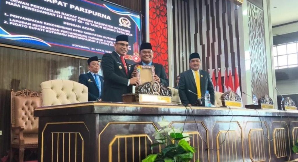 Wakil Ketua DPRD Kotabaru Khairil Anwar saat membacakan rekomendasi DPRD, menyampaikan sejumlah catatan penting yang menjadi perhatian bersama.