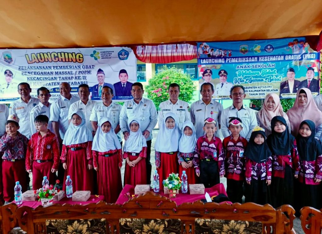 Pemerintah Kabupaten Kotabaru melalui Dinas Kesehatan meluncurkan program Pemeriksaan Kesehatan Gratis (PKG) untuk anak sekolah dengan tema “Kotabaru Hebat, Kita Semua Sehat”. Bersamaan dengan itu, dilakukan pula pemberian obat pencegahan massal cacingan (POPM) tahap II. Acara berlangsung di SDN Dirgahayu 1, 2, dan 6, Kecamatan Pulau Laut Utara, Rabu (27/8/2025).